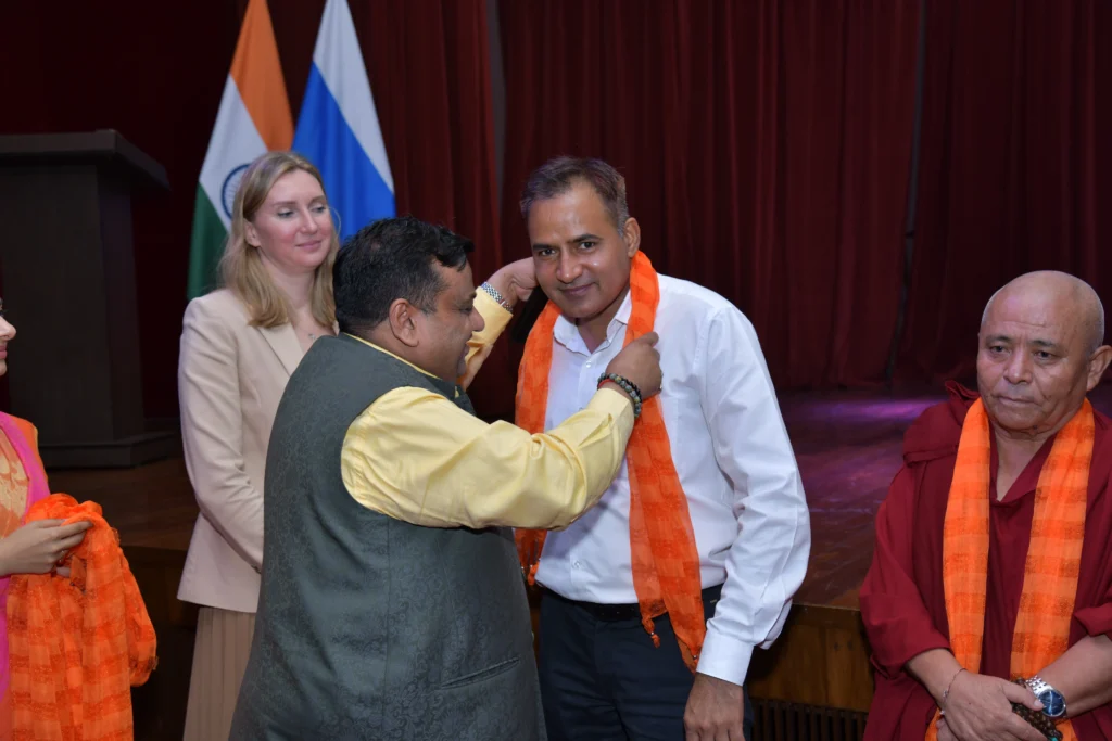 Dr. Rashmi Saluja, Chairperson, GTTCI, and Dr. Gaurav Gupta, Founder President, GTTCI, felicitated the performers along with Ms. Olga Krushkina and appreciated the collaborative efforts of the Russian House and the Rajasthani Academy in showcasing India’s artistic heritage on an international platform.