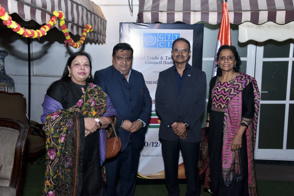 The Global Trade & Technology Council (India) [GTTCI] had the honour of hosting a farewell ceremony in appreciation of the distinguished tenure of H.E. Mr. Arun Koemar Hardien, Ambassador of the Republic of Suriname to India. The evening was marked by warmth, camaraderie, and a shared spirit of international cooperation, reflecting the strong bonds nurtured during his diplomatic assignment in India.