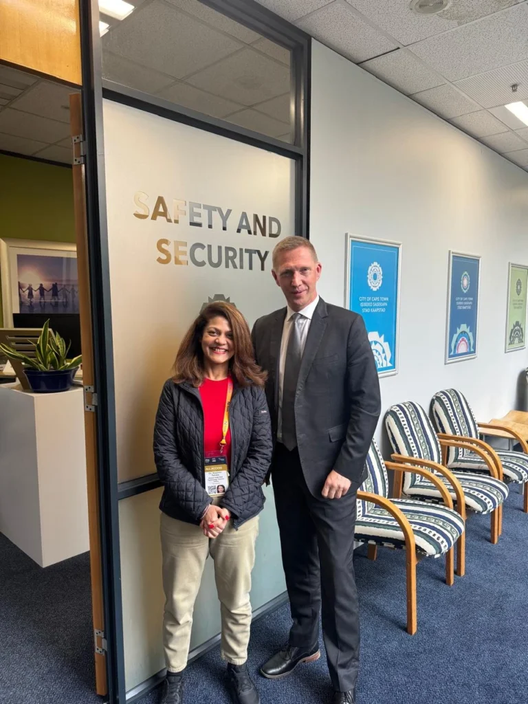 Dr. Saluja also met Mr. Alderman JP Smith, Mayoral Committee Member for Safety and Security for the City of Cape Town, where discussions centred on understanding the city’s governance model, its approach to public safety, and the growing relevance of technology-driven systems in building resilient cities. The meeting opened avenues for cooperation in areas such as smart-city solutions, emergency response mechanisms, public safety technology and integrated urban resilience frameworks—domains where India’s expertise can contribute substantially to South Africa’s urban development goals.