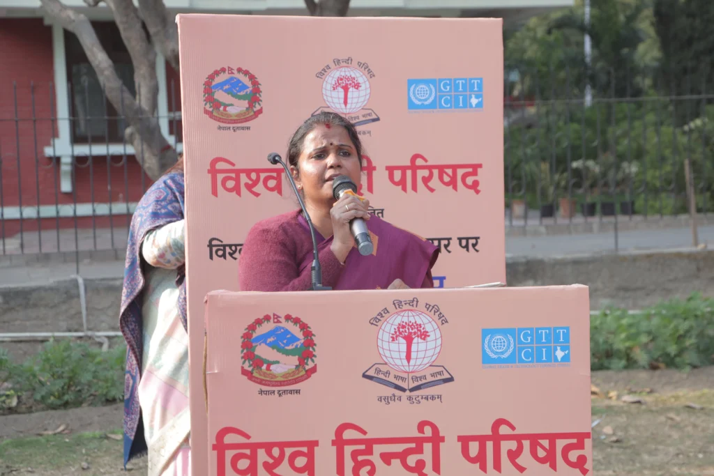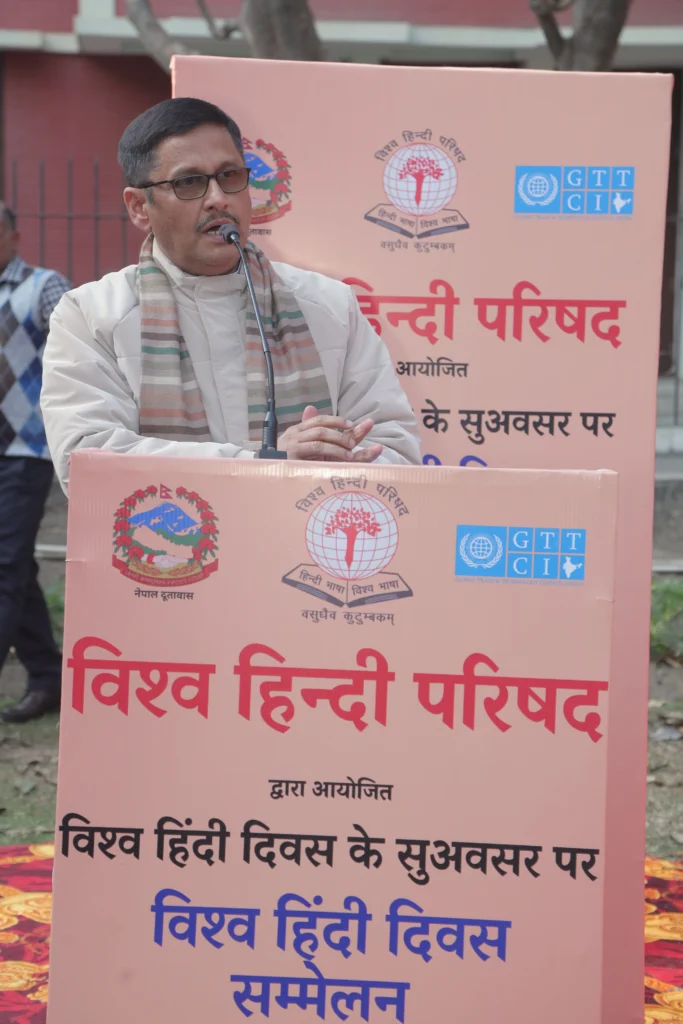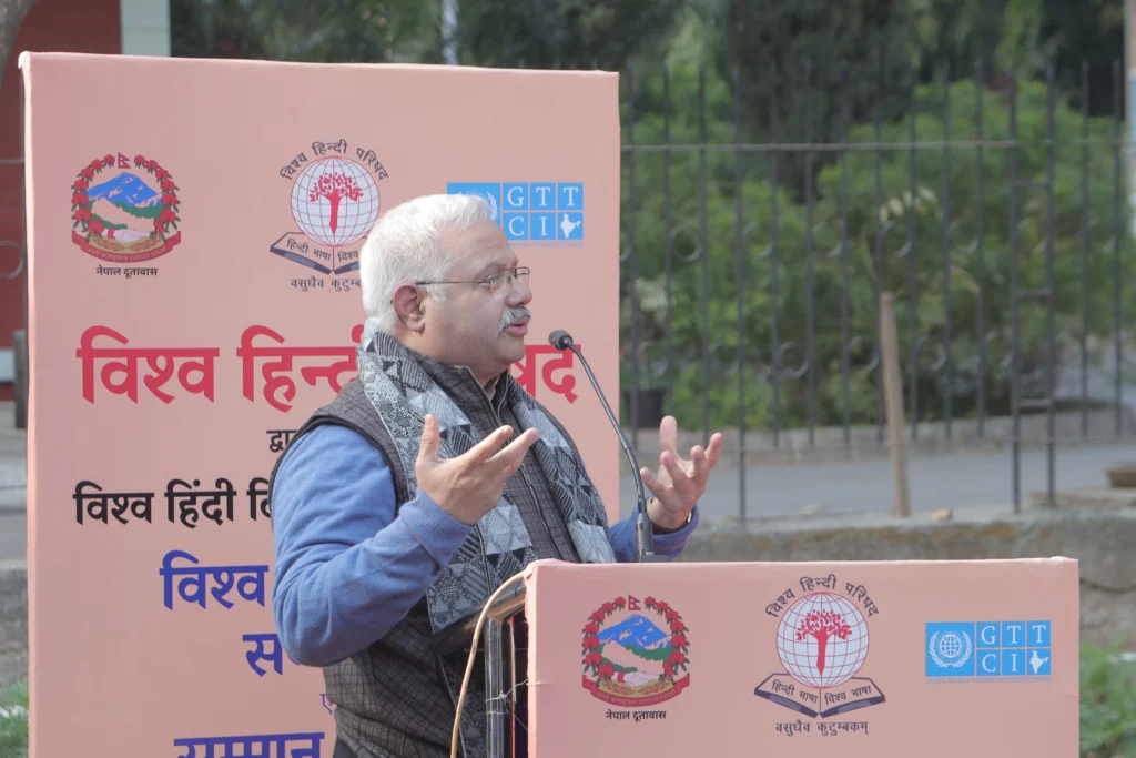 The Ambassador of Nepal to India, H.E. Dr. Shankar Prasad Sharma, delivered his address in Hindi, warmly welcoming the initiative of VHP and GTTCI and appreciating the efforts to promote Hindi as a medium of cultural and diplomatic engagement.
