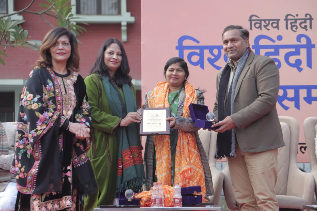 The event brought together eminent leaders, parliamentarians, diplomats, scholars, and members of the global Hindi fraternity to reaffirm the growing international relevance of Hindi as a language of dialogue, heritage, and people-to-people connect. The occasion was further enriched by the gracious presence of the Ambassador of Guyana, the Deputy Ambassador of Kazakhstan, and a senior diplomat from the Embassy of Egypt, along with Honble Member of Parliament – Smt Sangeeta Balwant reflecting the truly international character of the celebration.